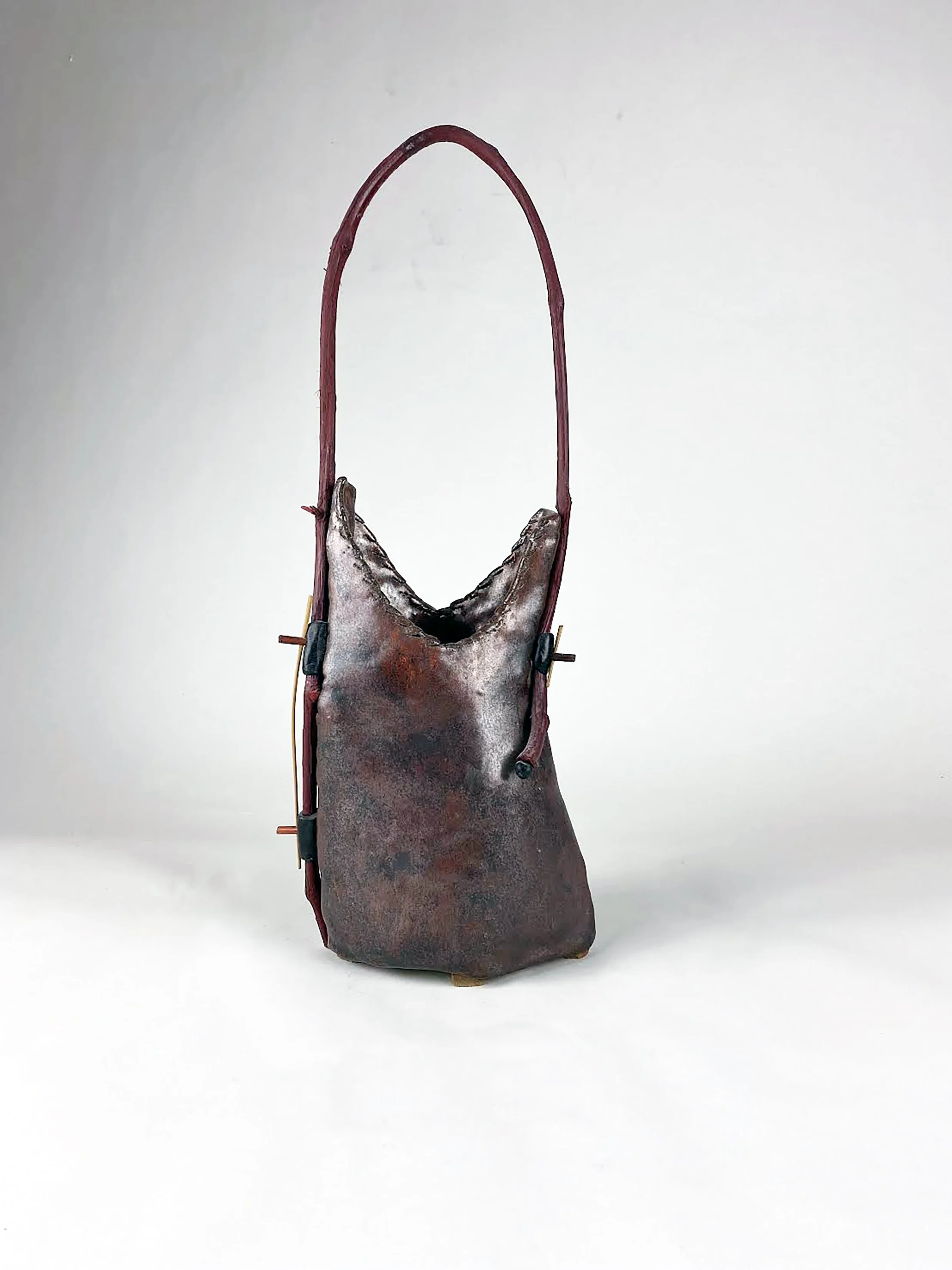“I use clay in combination with other media such as wood, metal, or paper to create a one-of-a-kind sculptural piece. Although the sculpture is primarily clay, it is often the other mediums that set the tone for what the clay will do.”